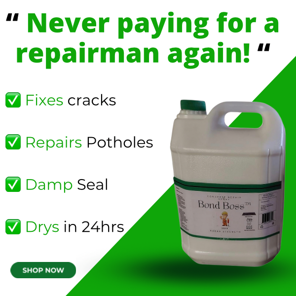 Clean out the area and ensure that it is completely dry then apply the Bond Boss liquid for moisture damage and waterproofing, for cracks and holes, add in plastering sand followed by another coat of Bond Boss over and allow to dry for 24 hours.
