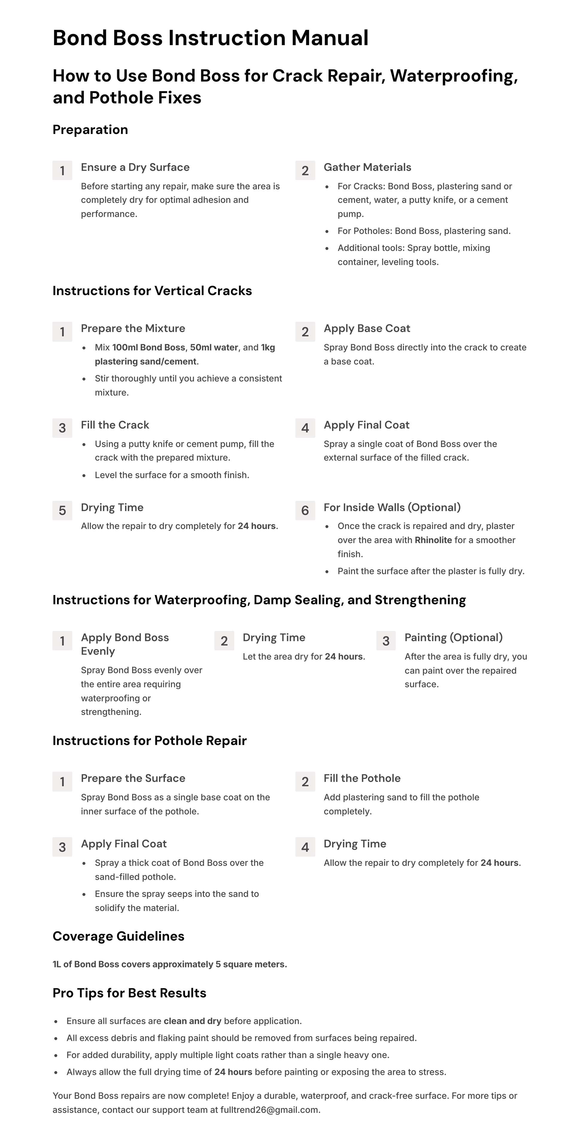 Whether you’re dealing with hairline cracks, deep damp patches, or crumbling plaster, Bond Boss™ gives you total control over your repairs — no tools, no builders, no guesswork.